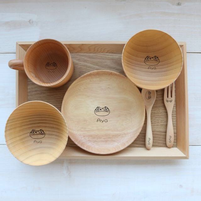 ☆名入れ無料!選べるデザイン☆ベビー、キッズ天然木食器セット